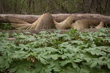Signposts and Traces was a community-engaged, ecological artwork at Canatara Park which memorialized the ash trees of Canatara. This artwork, which took the form of a trail of mourning with 14 stops, or stations at which the remains of ash trees are located, featured temporary ‘shrouds’ for the trees made from invasive phragmites stalks, and QR codes which led participants with smartphones to an online exhibition in which each tree was memorialized through mourning art and jewellery reminiscent of Victorian mourning practices, death notices, and stories of the individual trees. There was a community event on the Saturday following Arbour Day (April 29th, 2017 at 10 a.m.) at which people from the Sarnia/Lambton community were invited to participate. This event, held at Canatara Park, took the form of a memorial service for the ash trees of Canatara, which were culled in 2014. People shared poetry, music, etc., to eulogize the trees and then were given the opportunity to walk the trail, contemplate the loss of the trees, and use the QR codes at each stop to view each tree’s memorial page. The shrouds, which were made from all biodegradable materials were left there so that they will eventually decayed and nurtured the soil.